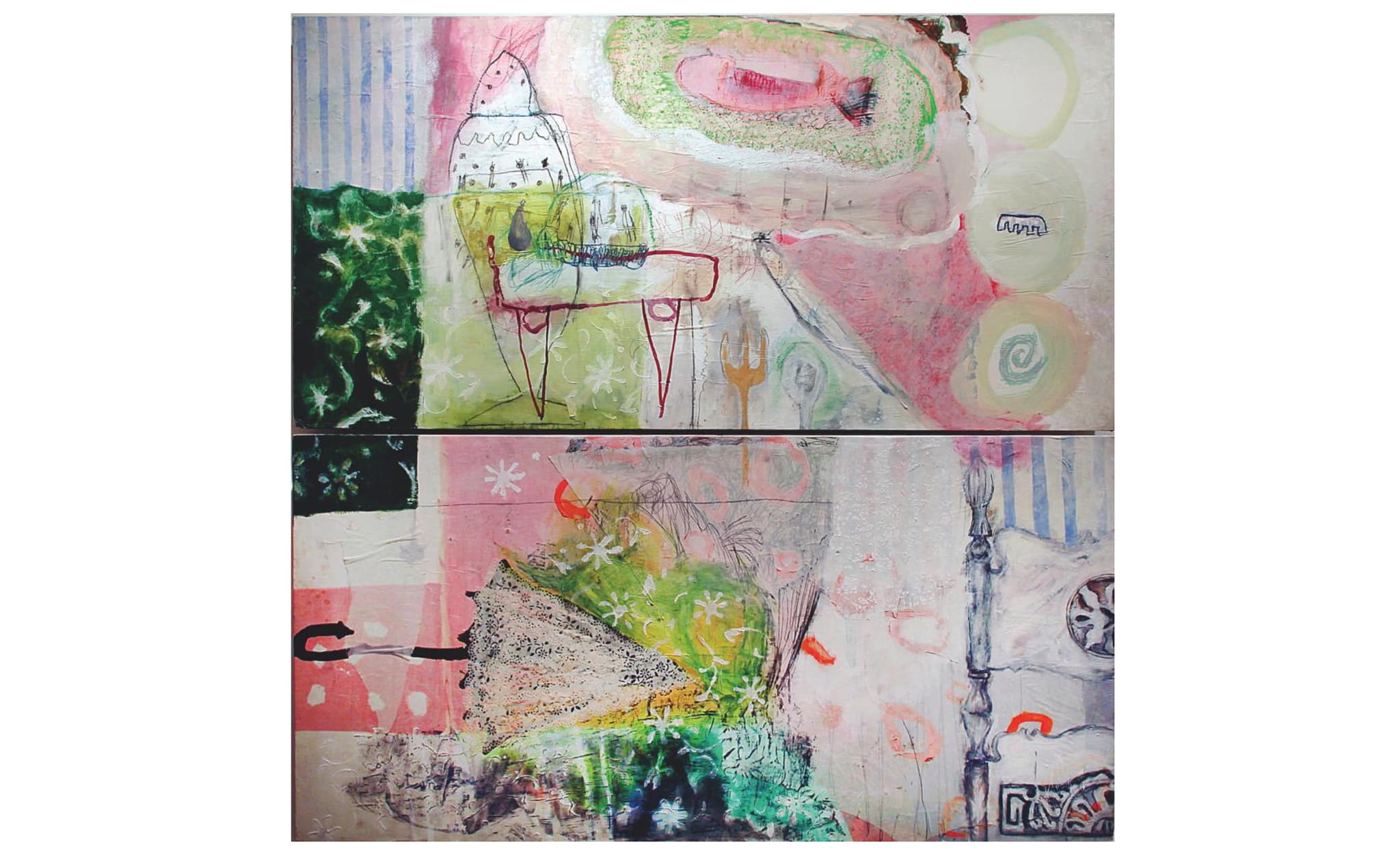 Bruton worked primarily as a painter and mixed-media artist throughout her life, creating fantastic large-scale canvases that incorporated graphite, acrylic paint, printed papers, ribbon, and collaged imagery alongside sculptural dresses and dolls. Her passing from lung cancer cut short the career of an artist who had quietly shaped both contemporary painting and institutional leadership in New England. The archival materials, family interviews, and institutional records about her life reveal an artist whose influence extended far beyond her own artwork through the students she mentored, the barriers she broke, and the hope she offered for what the study of art could become.