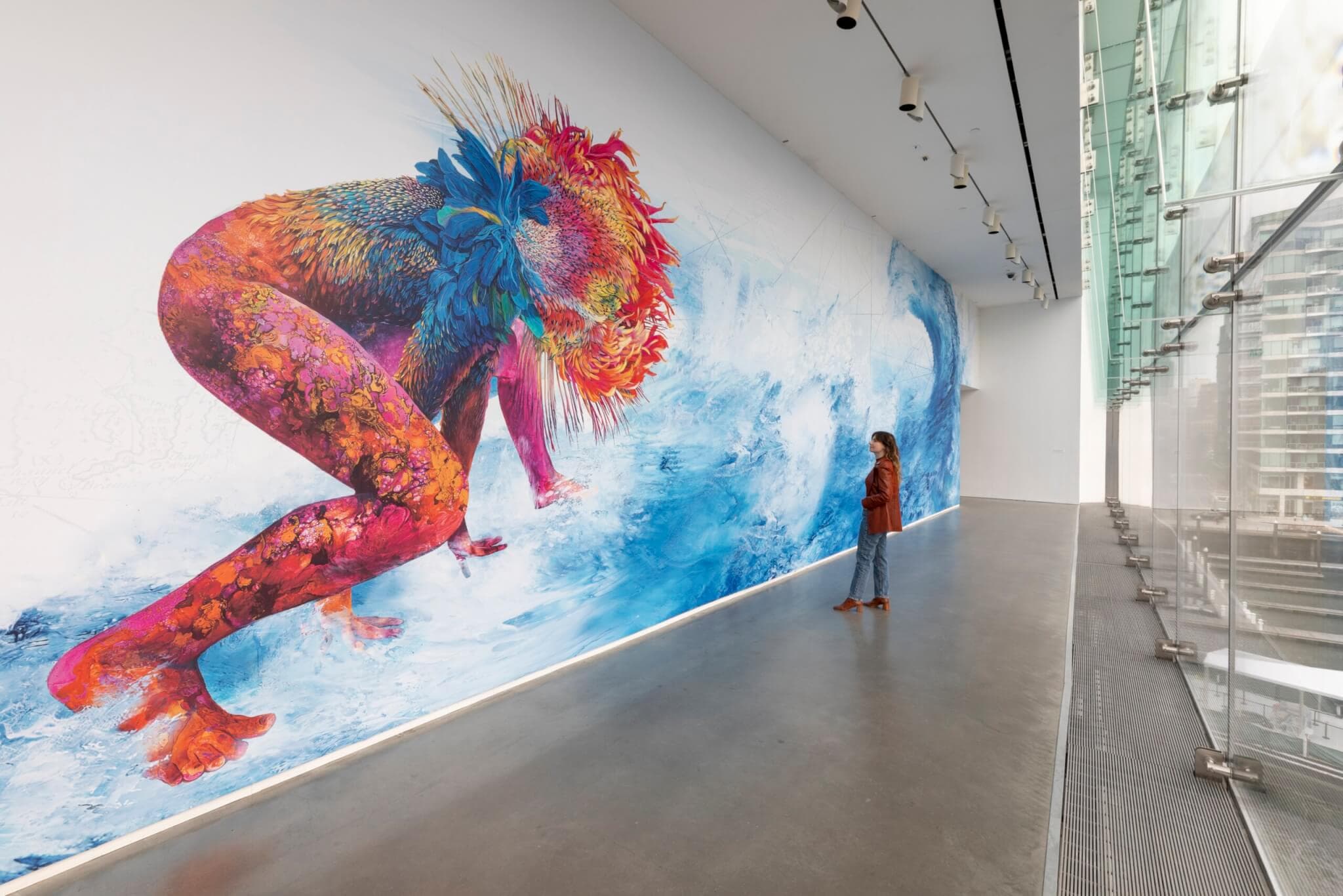 Firelei Báez, Truth was the bridge (or an emancipatory healing), 2024. Installation view, Firelei Báez, the Institute of Contemporary Art / Boston, 2024. Photo by Mel Taing. Courtesy of the artist and Hauser & Wirth, New York.