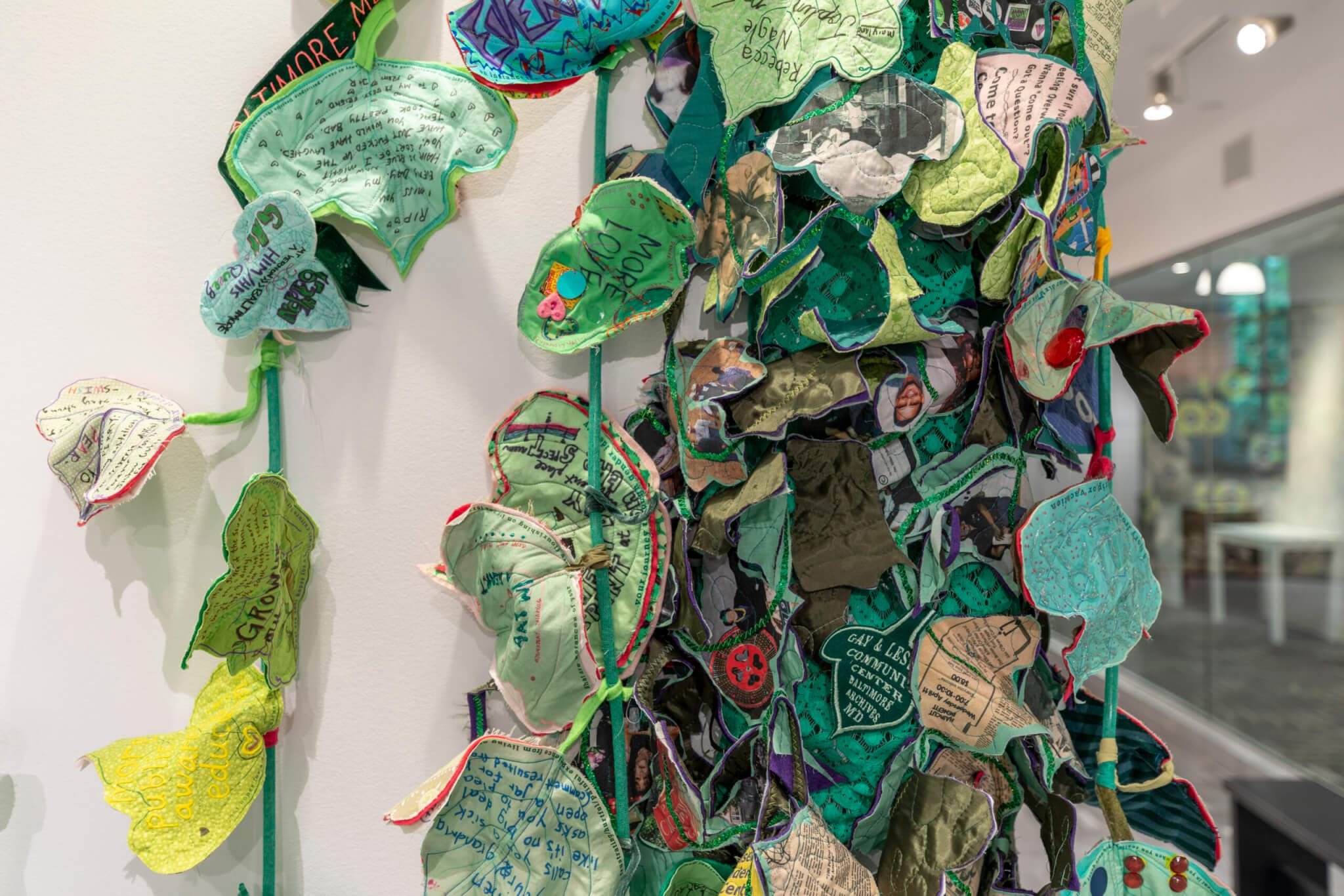 AM: So what you’re seeing in Gallery 360 is actually a selection of the 7,200-plus story leaves from many of the places that the project had visited between 2015 and 2020. When I was organizing the show with Juliana Rowen Barton, I wanted to bring as much of a cross section as I could. I have a lot of leaves from Houston, Baltimore, and Richmond but also from smaller communities in the Appalachian South.