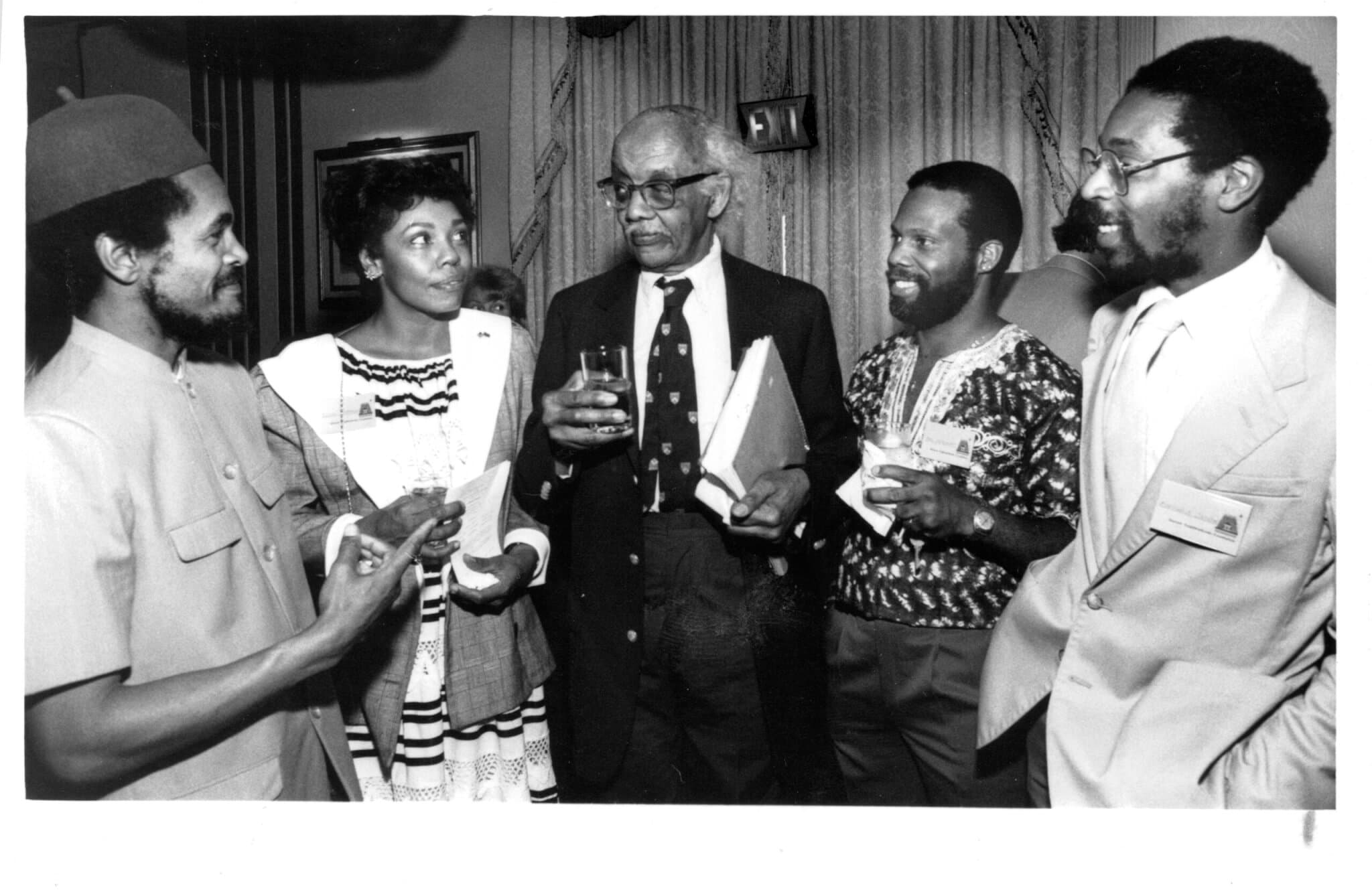 The artists involved in the Collective came from different backgrounds but found themselves here, in Boston, at the right place and time. Burton, a documentary filmmaker and photographer, came from Philadelphia and became a teacher of photography and video production at a media magnet high school. Jones-Henderson, a textile artist and founding member of AfriCOBRA (the African Commune of Bad Relevant Artists), moved to Boston from Chicago in 1974, to teach at MassArt. The same year, Reginald Jackson, a photographer, relocated from New York to run the photojournalism department at Simmons College. Lotus Do, a painter, also moved from New York in the mid-1970s and taught in the Boston Public Schools in Columbia Point. Multimedia artist Johnetta Tinker grew up in Boston and moved back home after completing a degree at Texas Southern University with John Biggers. Dennis Didley—aka Vusumuzi Maduna, better known simply as Vusi—was a sculptor born and raised in Cambridge. The two who grew up in Roxbury were Paul Goodnight, a painter, and Susan Thompson, a textile artist.